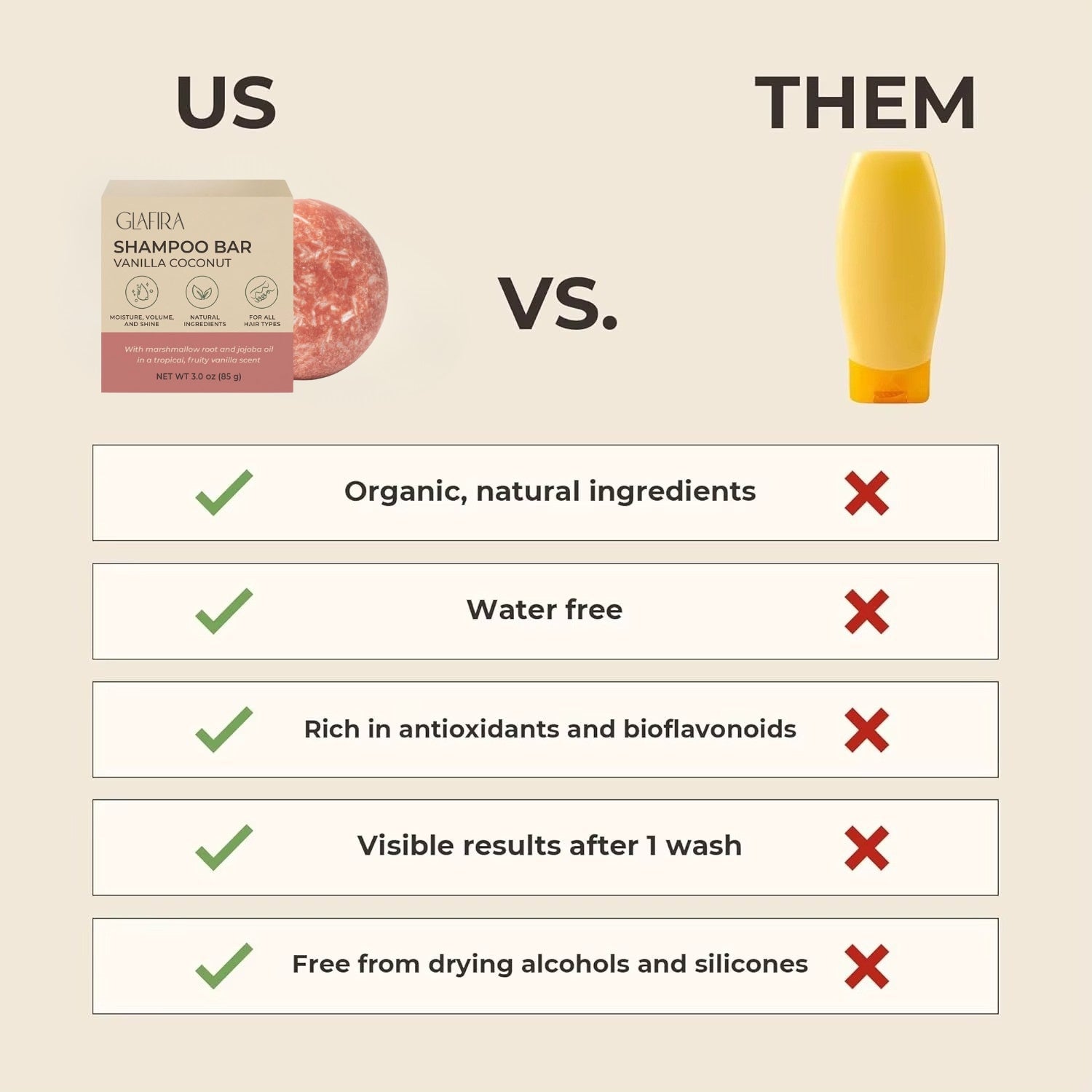 Unlock your best hair naturally with the Glafira Vanilla Coconut Shampoo Bar — a luxurious, eco-friendly alternative to liquid shampoos. Formulated with intentional, high-quality botanical ingredients, this bar gently cleanses while improving hair moisture, shine, volume, and overall strength.