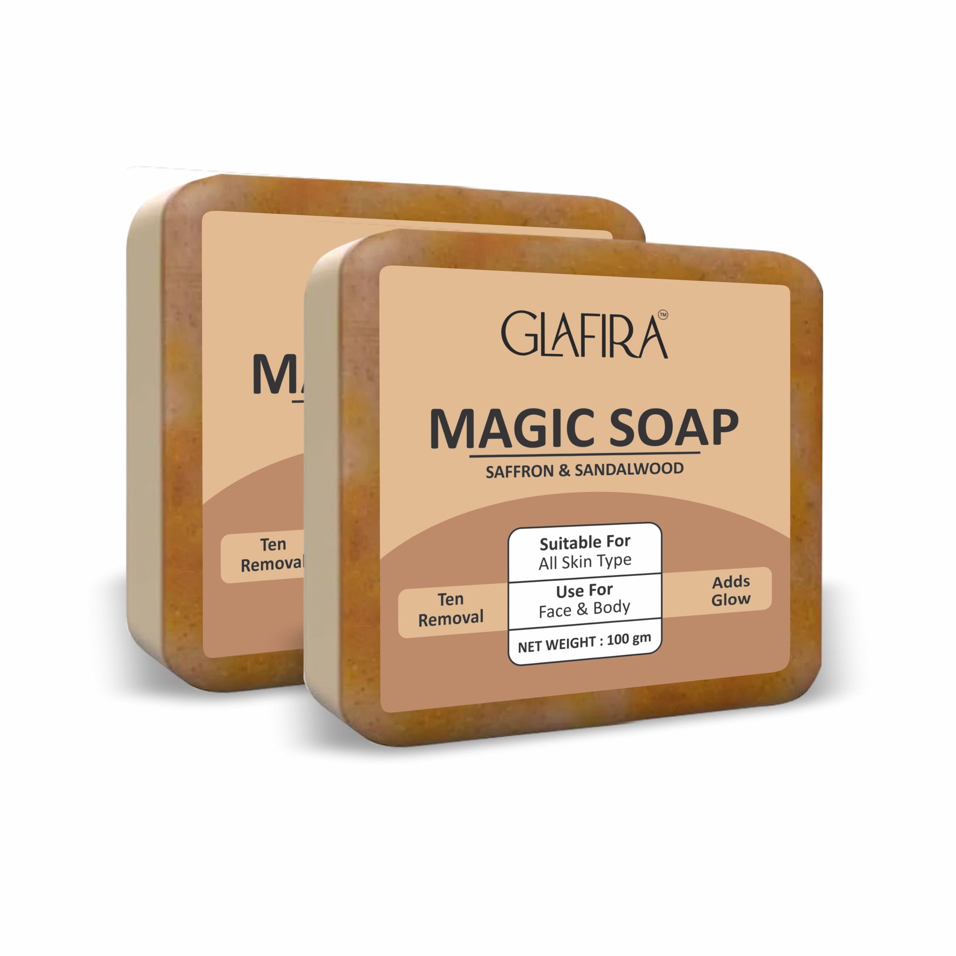Are you tired of dull skin, stubborn tans, and harsh chemical soaps that leave your skin dry and irritated? Rediscover your skin's natural radiance with the Glafira Magic Soap, a pure and natural beauty bar crafted with the timeless goodness of Saffron and Sandalwood.